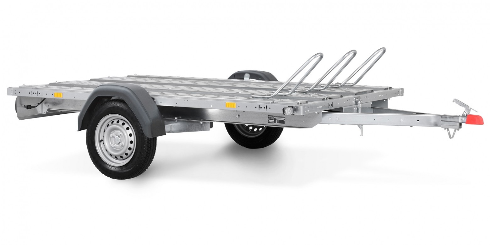 Remooc đỏ vận chuyển xe gắn máy SySTEMA là một rơ moóc rất ổn định với các đặc tính bám đường hoàn hảo. Ray đứng liên hoàn được neo chắc chắn vào khung xe và được khoét lỗ lớn giúp bạn có thể kẹp và cố định 1 đến 3 chiếc xe máy một cách linh hoạt. Thanh ray dẫn ổn định được xếp khéo léo phía sau giá đỡ biển số. Những chiếc rơ-moóc này có thể được kéo dài với một tấm bạt cao.
